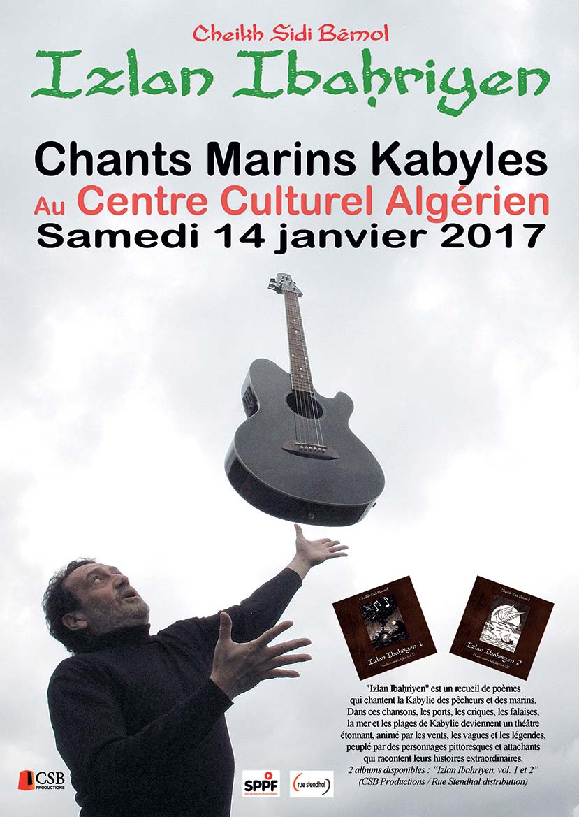 Sidi Bémol et les Chants Marins Kabyles accosteront au Centre Culturel Algérien le samedi 14 janvier 2017 à 20h30