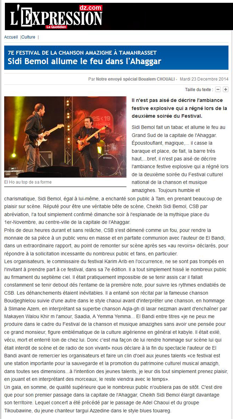 L’Expression: Sidi Bemol allume le feu dans l’Ahaggar