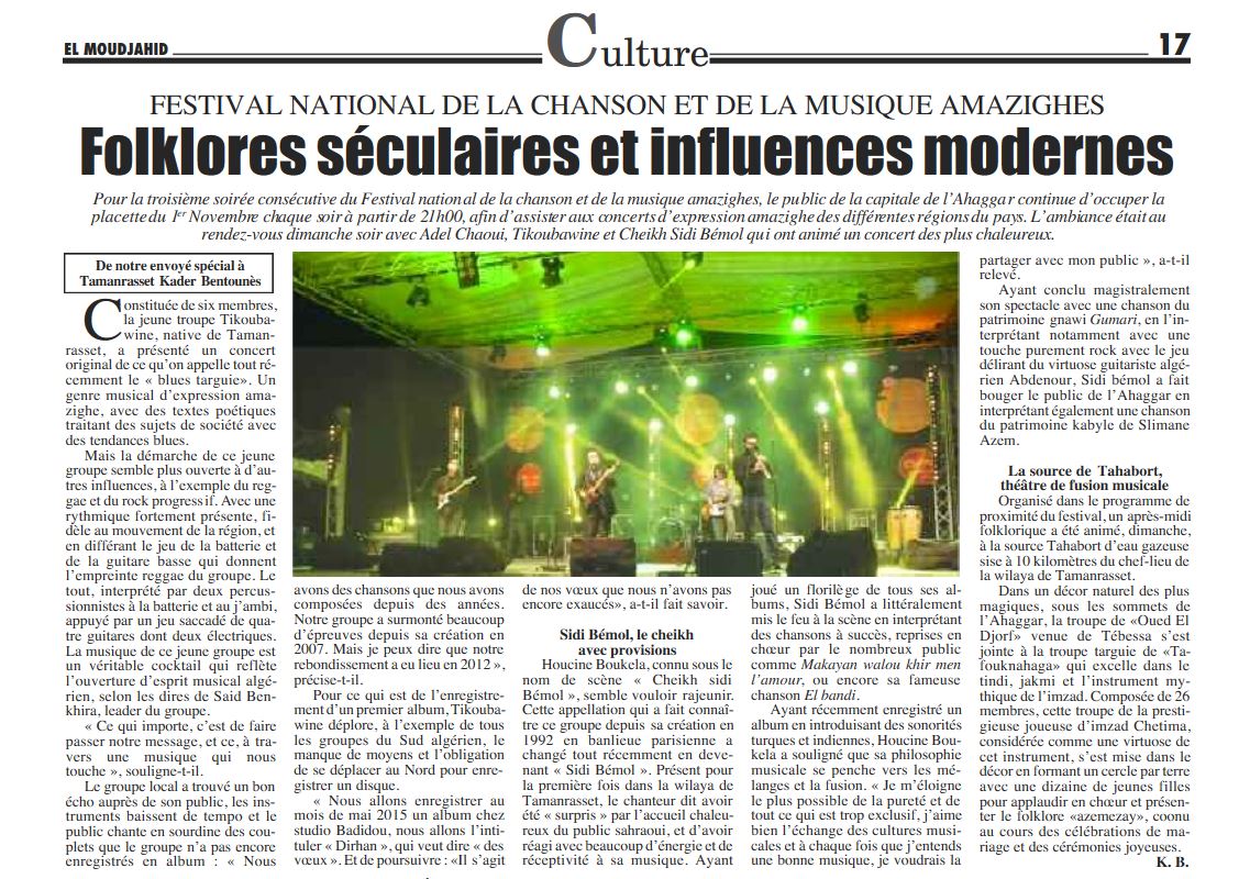 Sidi Bemol revient avec un nouvel album parfumé de sonorités indiennes. Pour son premier concert à Tamanrasset, Sidi Bemol, qui n’est plus cheikh, a […]