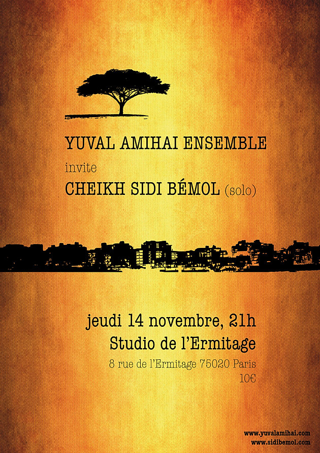 Cheikh Sidi Bémol le guitariste troubadour Algérien vient à la rencontre du quintet du guitariste Israélien Yuval Amihai le temps d’une soirée inoubliable !